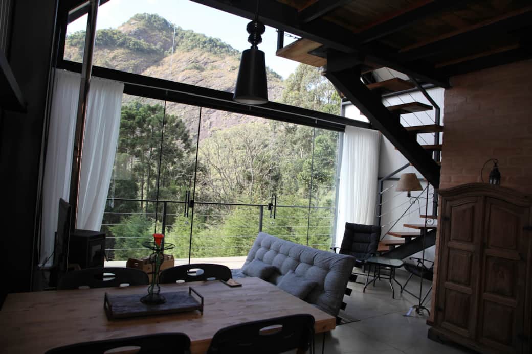A ampla fachada de vidro transforma a paisagem em um verdadeiro cenário vivo: o nascer do sol, o céu estrelado e o silêncio da montanha criam o ambiente perfeito para relaxar e se desconectar.